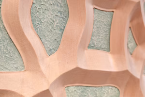 Elämän kudelma on MDF-levyyn työstetty ja maalattu kohokuvioinen taideteos (K 83 cm, K 63 cm).
