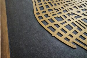 Vaikka teos onkin näyttävä, se on melko kevyt ja helppo kiinnittää kahdella kiinnikkeellä seinälle.