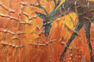 Sydämeni palo on kehystetty, abstrakti akryylimaalaus, jossa on käytetty pintastruktuuria tehostekeinona. Koko K 50 cm, L 70 cm.